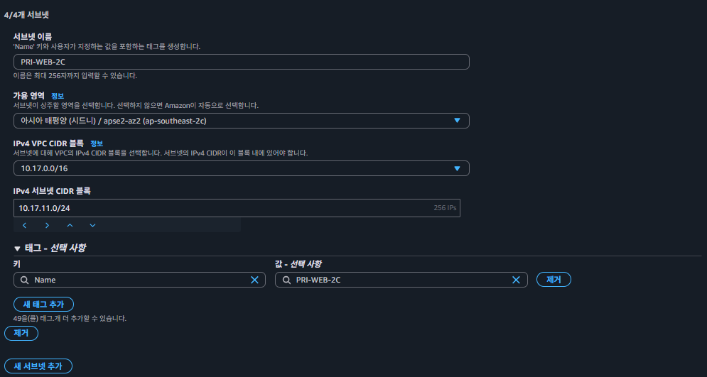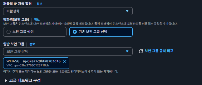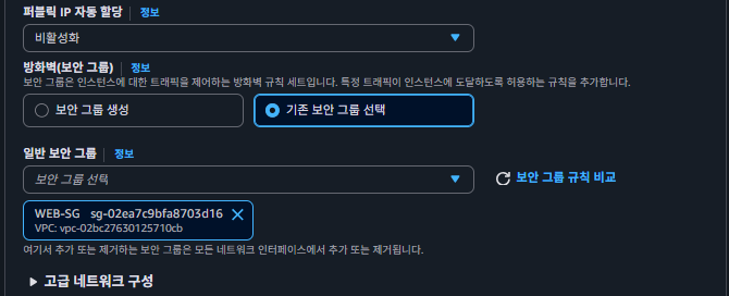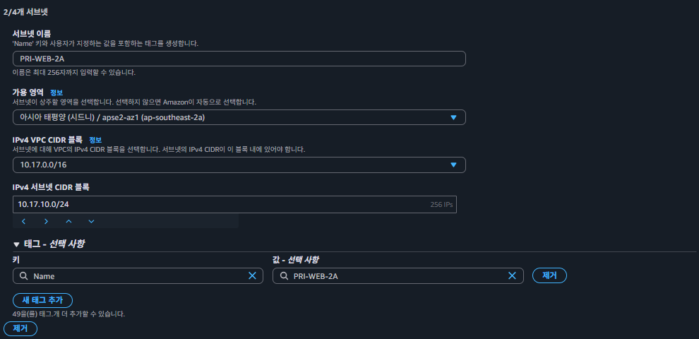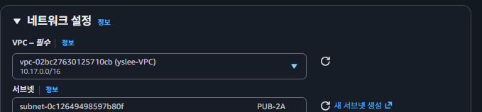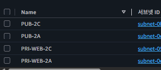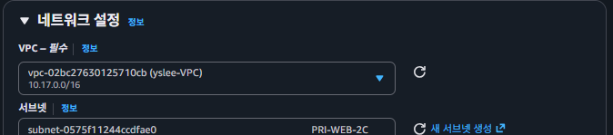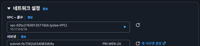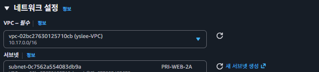 - VPC 부분을 보면 서브넷을 PRI-WEB-2A로 선택한다.