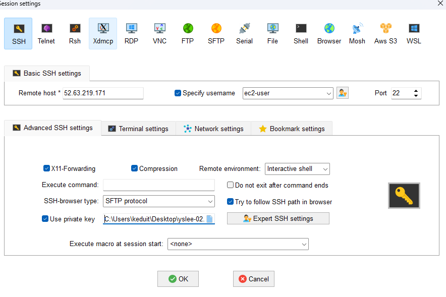 - Private key가 있어야 뭐라도 할 수 있으니까 scp로 넣어준다. Public IP를 사용해서 넣는다.