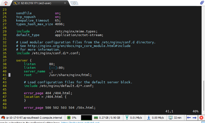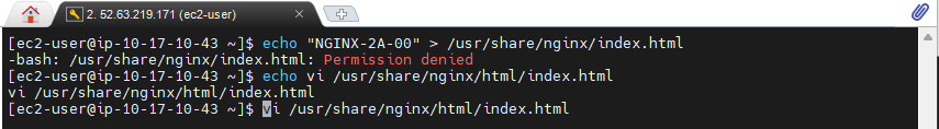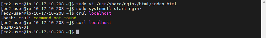 - 'sudo vi /usr/share/nginx/html/index.html'로 들어가서, 안에 있는 내용 지우고 내용을 작성한다.