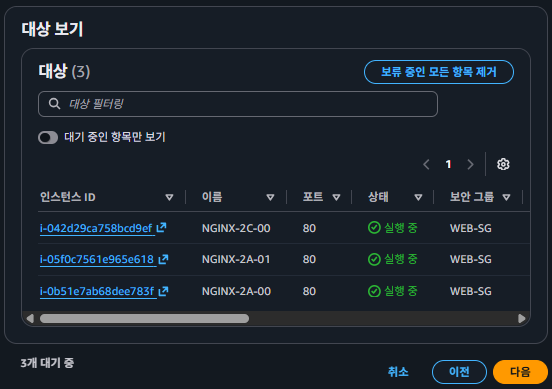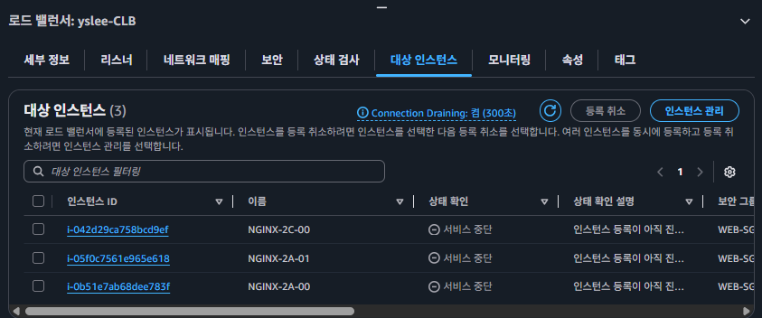 - 번갈아가면서 나오게 바꾸기 위해서 로드 밸런서를 지우고 다시해본다. 대상 그룹도 삭제한다.