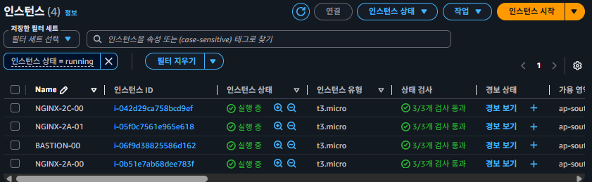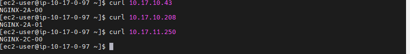 - 이제 BASTION에서 다른 NGINX-2A-00, NGINX-2A-01, NGINX-2C-00 세 가지로 보낸다.