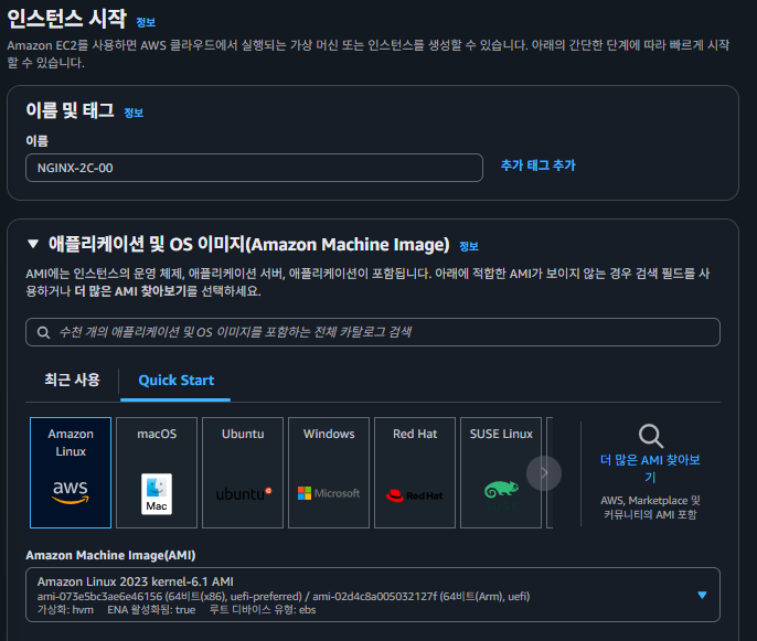 - NGINX-2C-00을 띄우기 위해서, Amazon linux를 선택하였다.