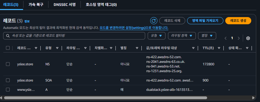 - 도메인 레코드를 생성한 것을 확인한다. 시간이 좀 걸릴 수 있다.