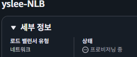 - ALB-TG가 새롭게 생겼고 그것을 선택해준다. 생성하면 프로비저닝 시작한다. 시간이 꽤나 걸린다.