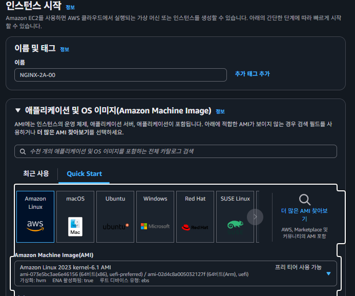 - NGINX-2A-00을 띄우기 위해서, Amazon linux를 선택하였다.