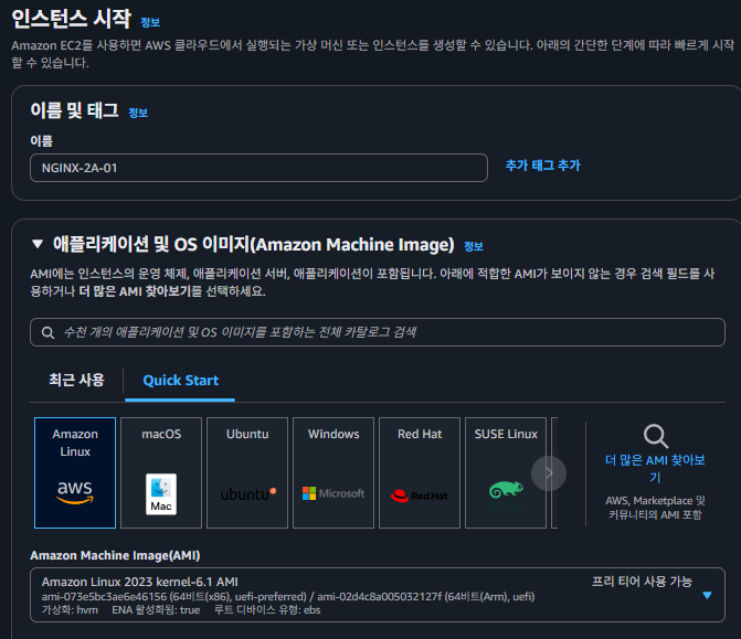 - NGINX-2A-01을 띄우기 위해서, Amazon linux를 선택하였다.