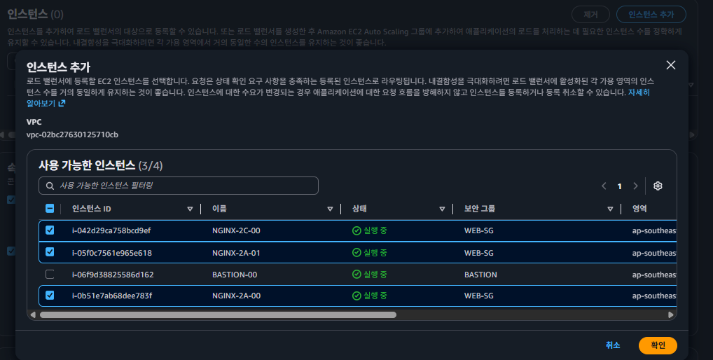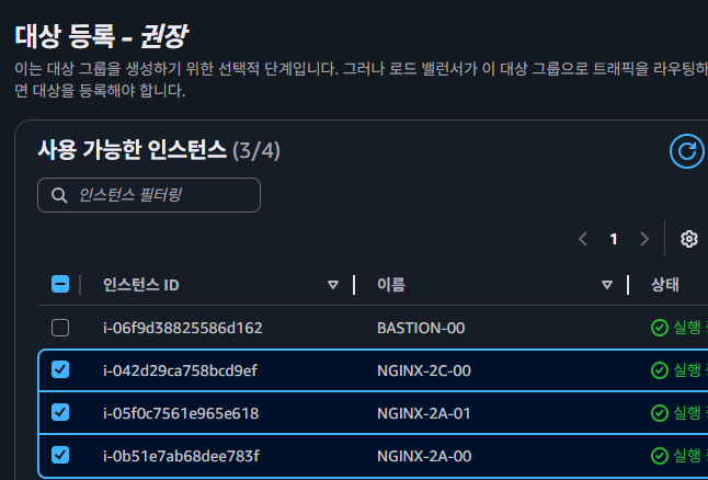 - 인스턴스 설정 : BASTION 제외하고 추가한다.