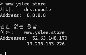 - www.yslee.store로 접속해본다. 로드 밸런서가 잘 적용되었다.