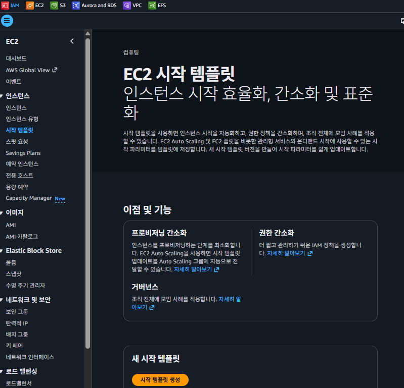 - 시작 템플릿으로 바로 인스턴스 띄울 수 있다.