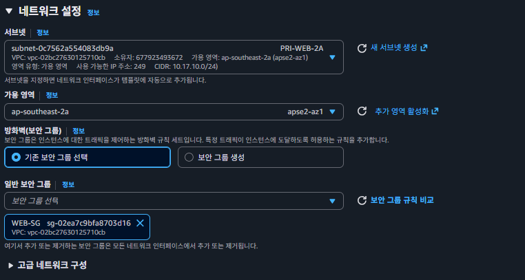 - 네트워크를 설정한다. WEB-A2로 설정해본다.