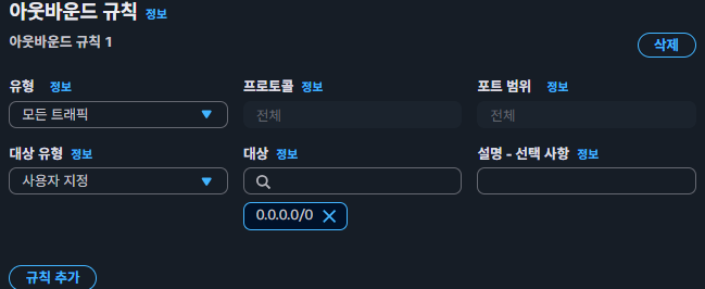 - Security group/ACL : 방화벽 규칙을 설정하여 보안