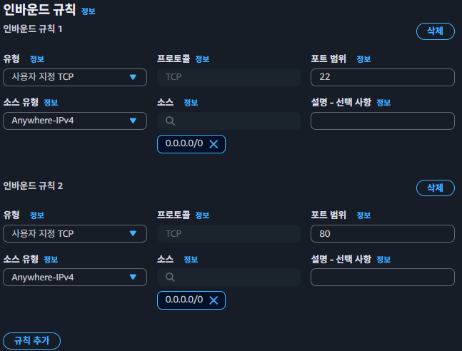단일 VPC 내에서 Security group이 여러개 있을 때, 인스턴스 한 개에 연결된다.