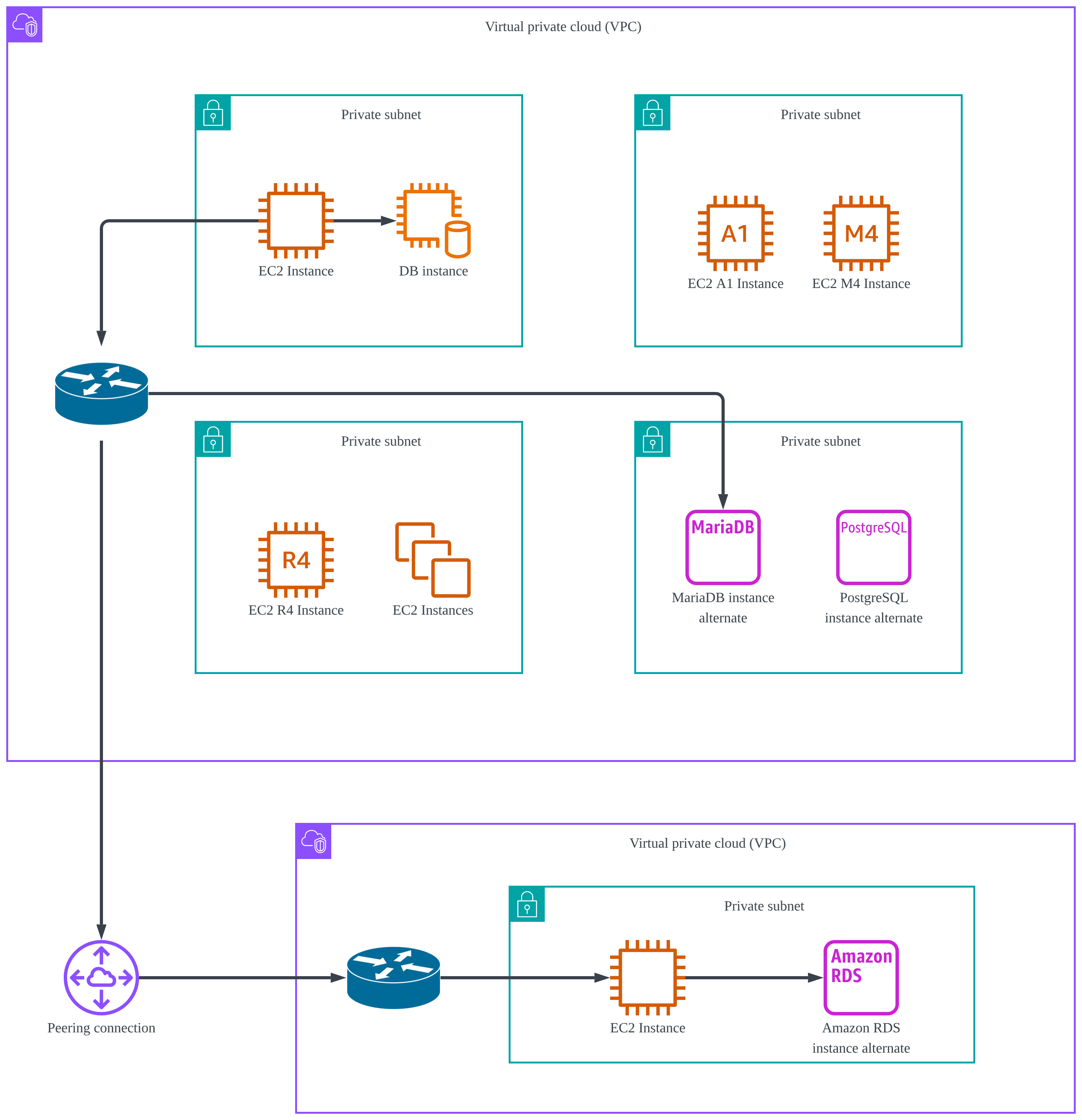- VPC Peering : 서로 다은 VPC끼리 통신 가능하게 연결
