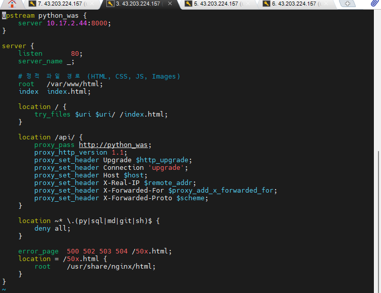 conf.dd에 컨피그 파일을 넣어줘야한다.cd /etc/nginx/conf.d