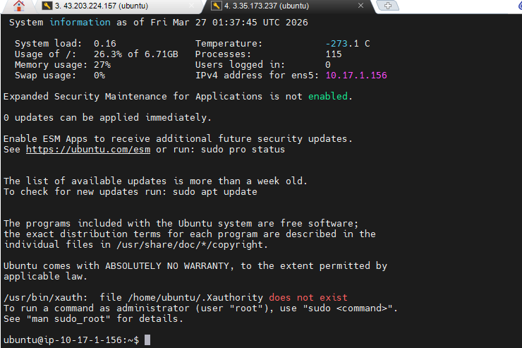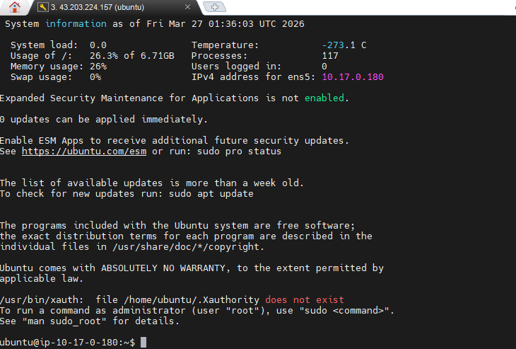ssh -i yslee-01.pem ubuntu@10.17.3.15