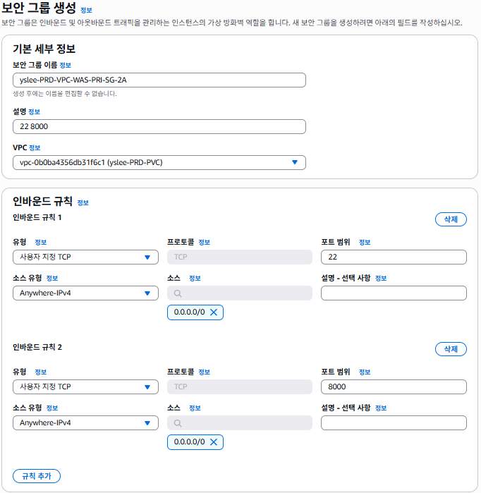 - xx-PRD-VPC-WAS-PRI-SG-2A = 22, 8000