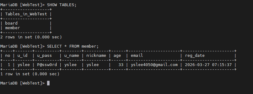 mariadb -u root -p -e "CREATE DATABASE IF NOT EXISTS WebTest;"