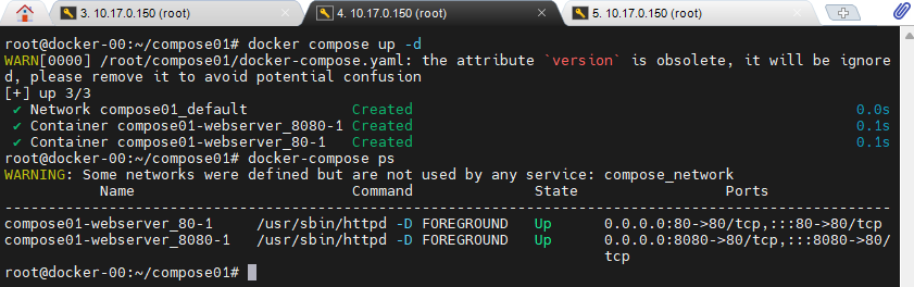 # 컴포즈 실행 (compose 파일이 있는 곳)