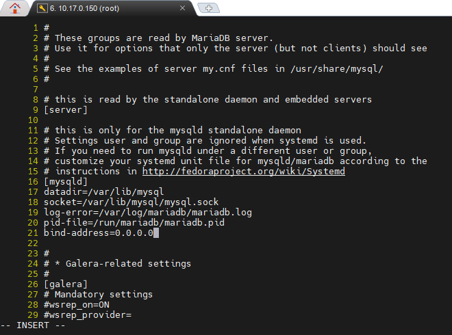 vi /etc/my.cnf.d/mariadb-server.cnf