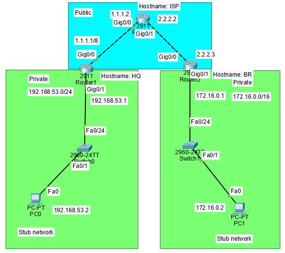 BR(config)#ip route 0.0.0.0 0.0.0.0 2.2.2.2