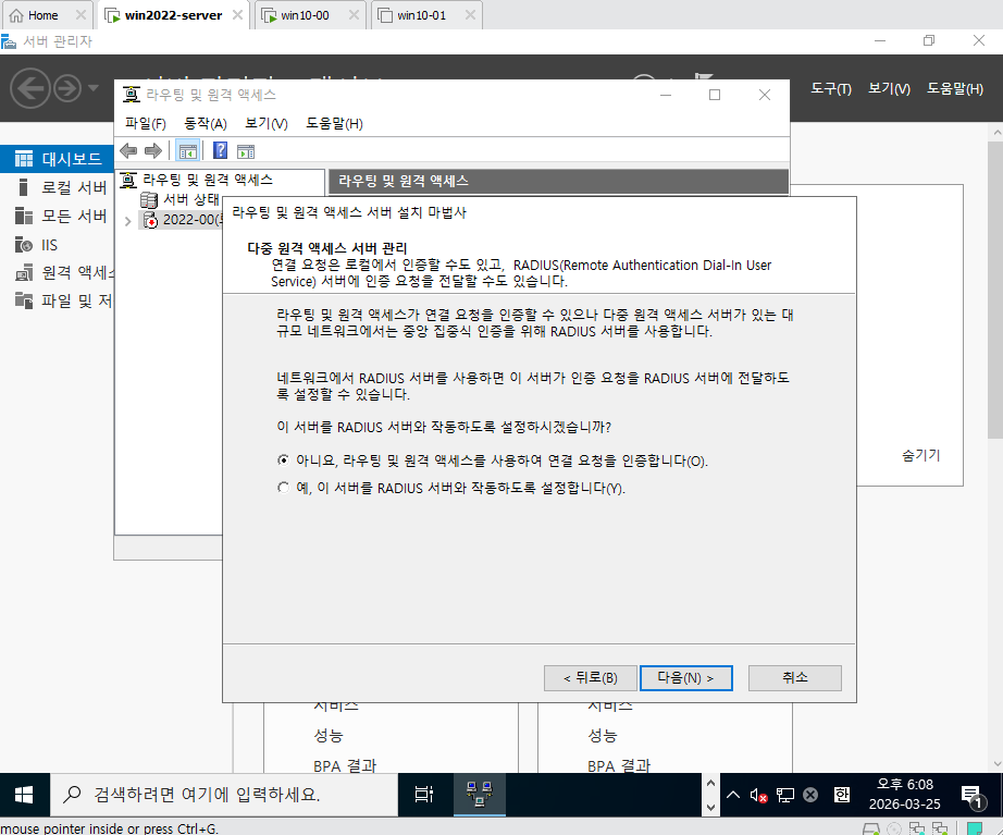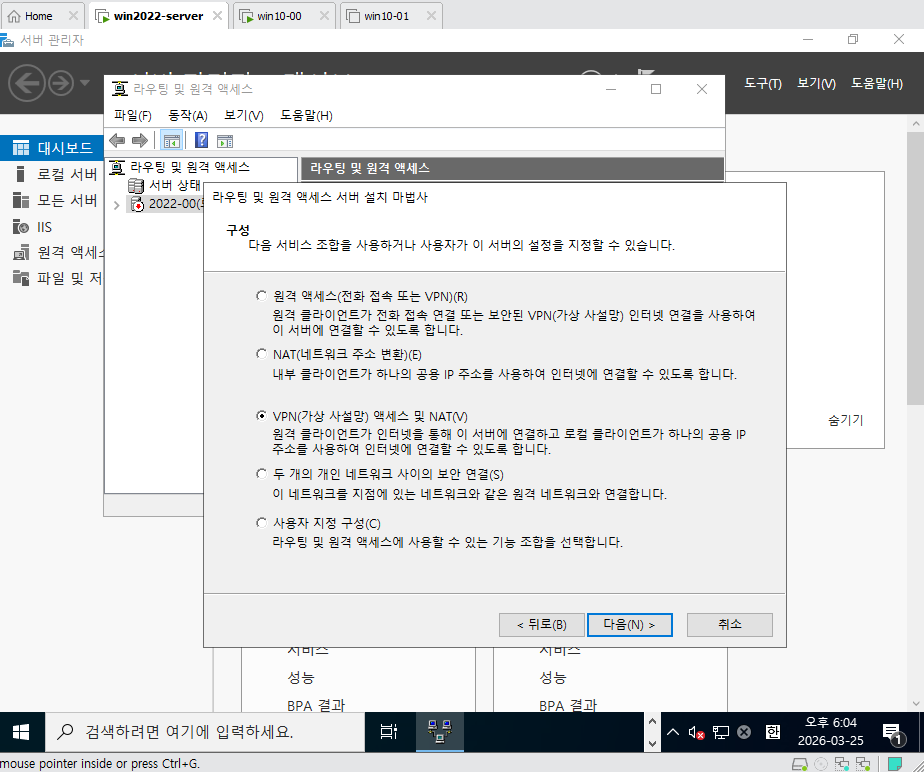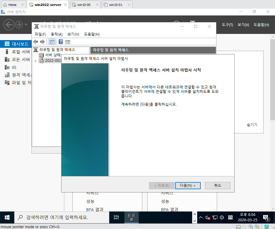 - 라우팅 및 원격 액세스 서버 설치 마법사를 시작한다.