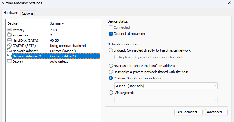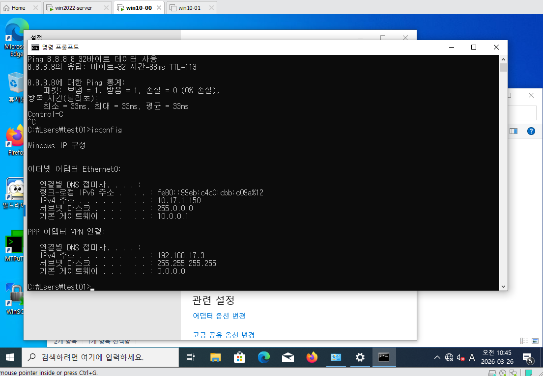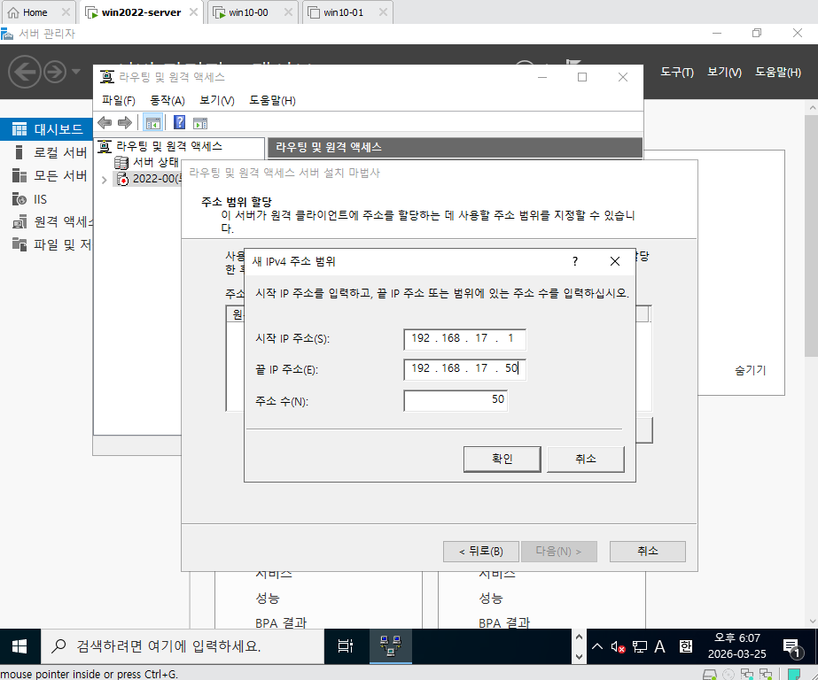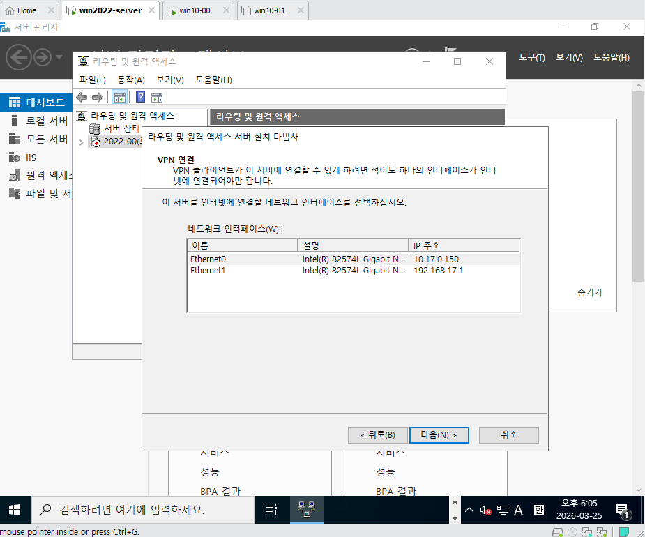 - Window 2022 server : Ethernet0 (10.17.0.150, VMnet0), Ethernet1 (192.168.17.1, VMnet1)