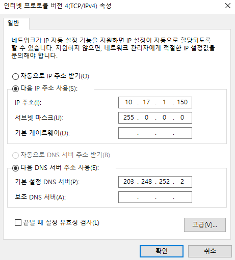 - PPTP를 실습하기 위해서 아래와 같이 IP를 설정한다.