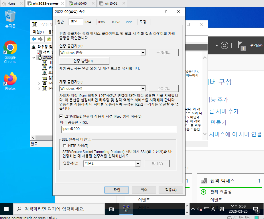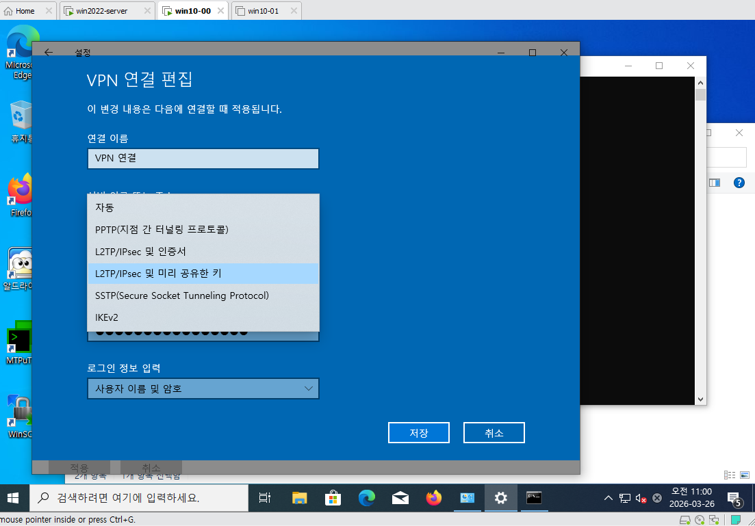 - L2TP 미리 공유한 키 체크하고, 입력한다.