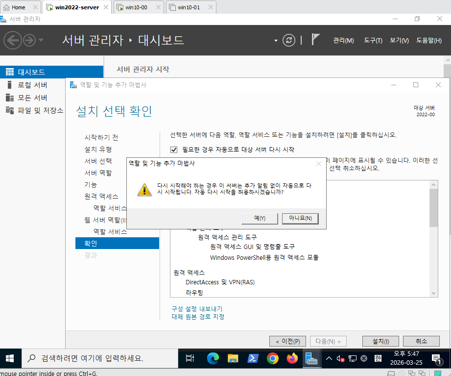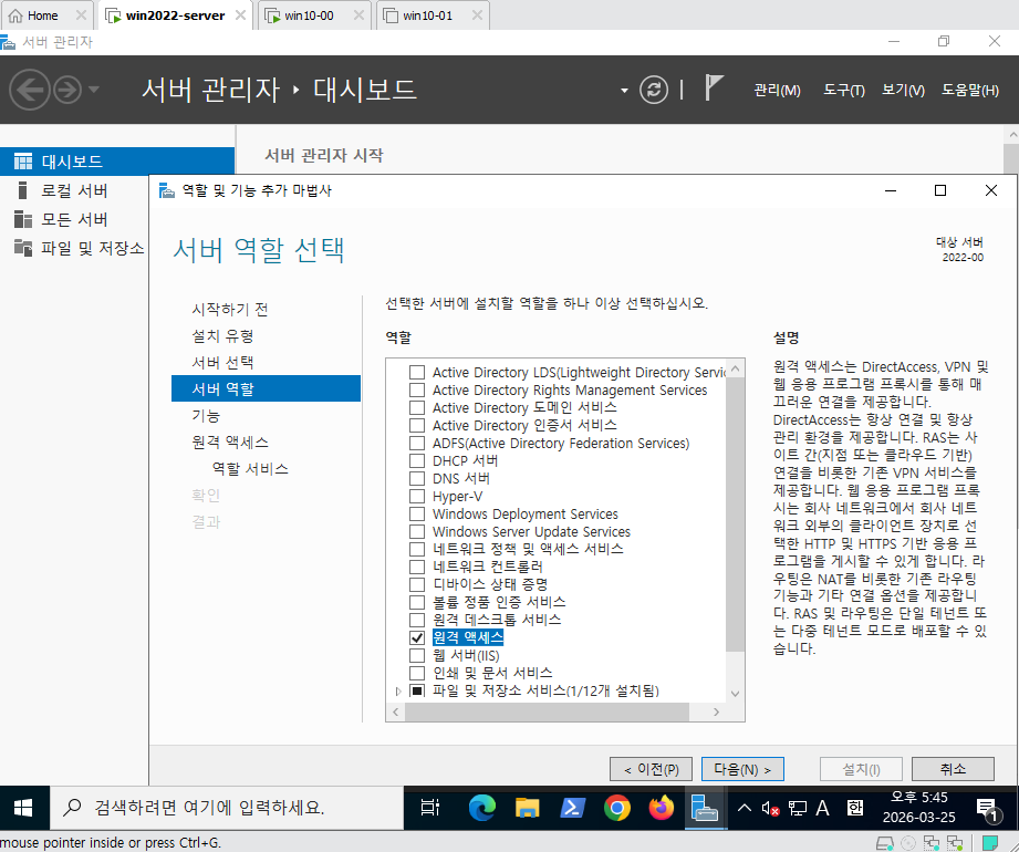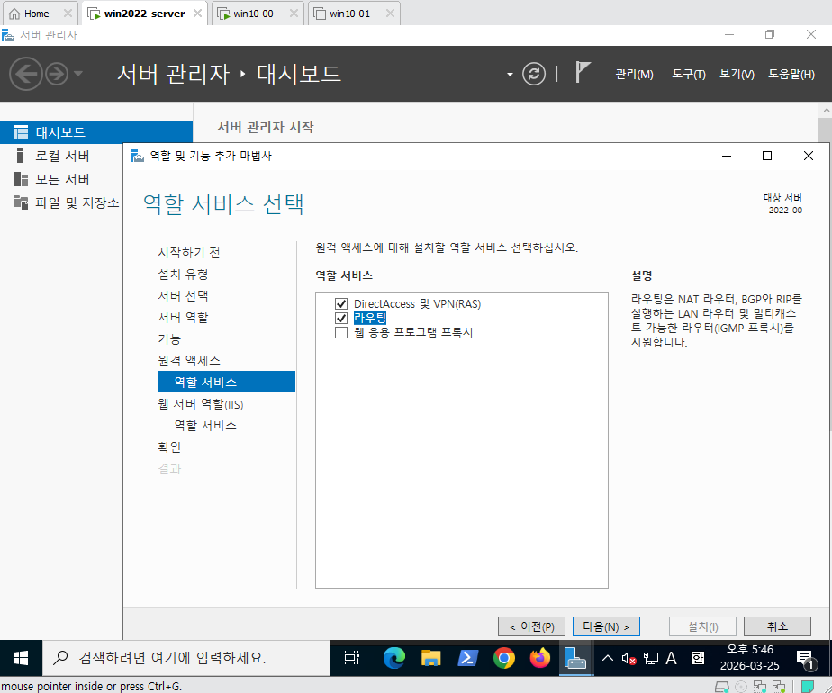 - 원격 액세스 > 역할 서비스에서 라우팅을 선택한다.