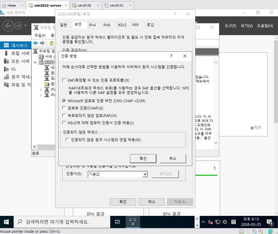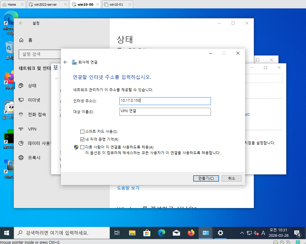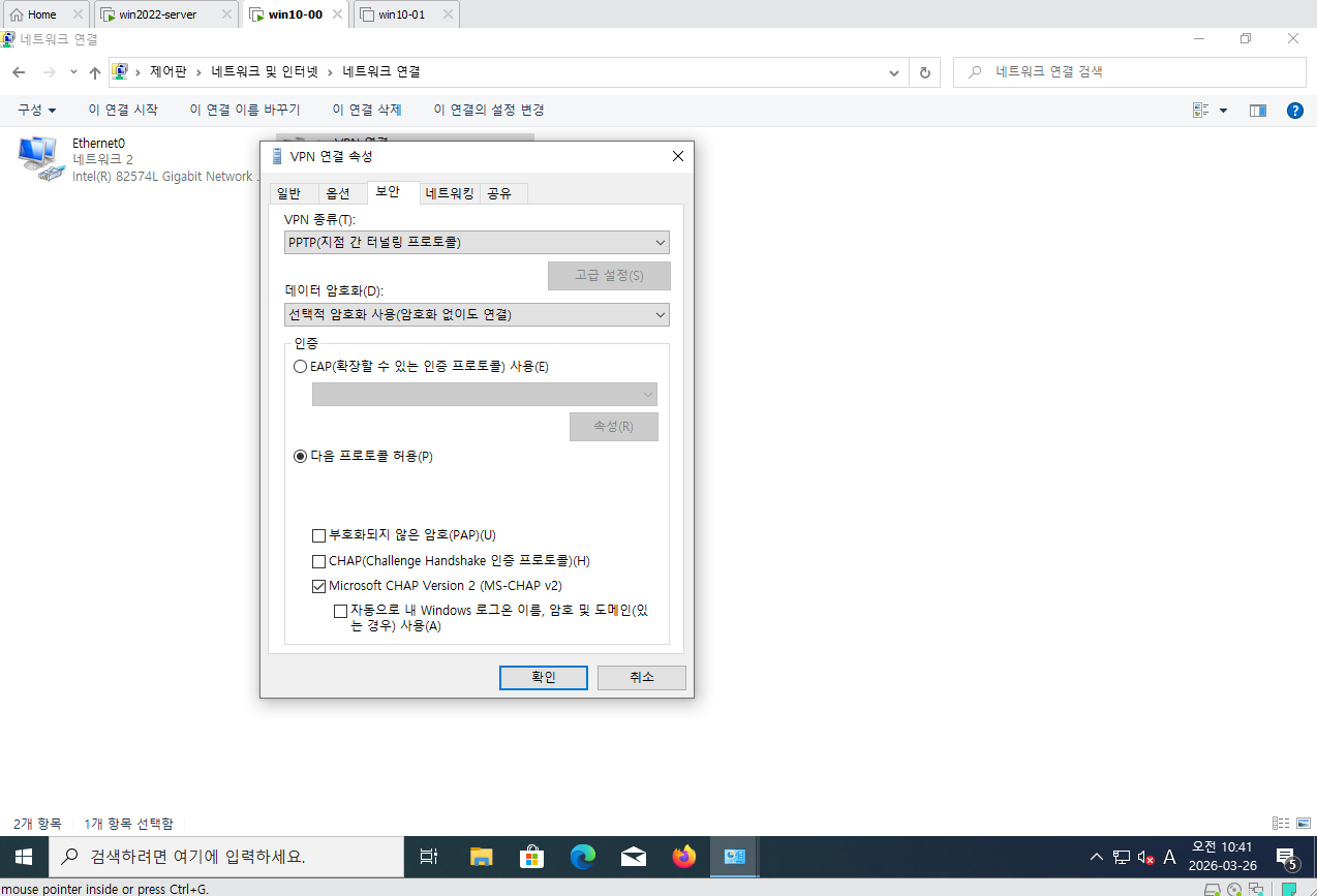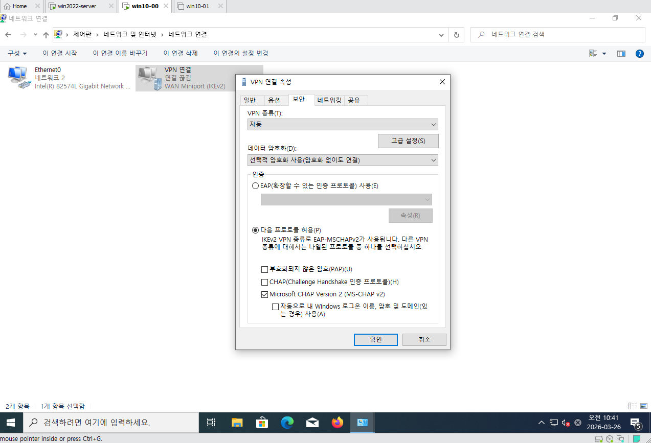 - 네트워크에 연결 들어가서 VPN 연결에 보안을 설정한다.