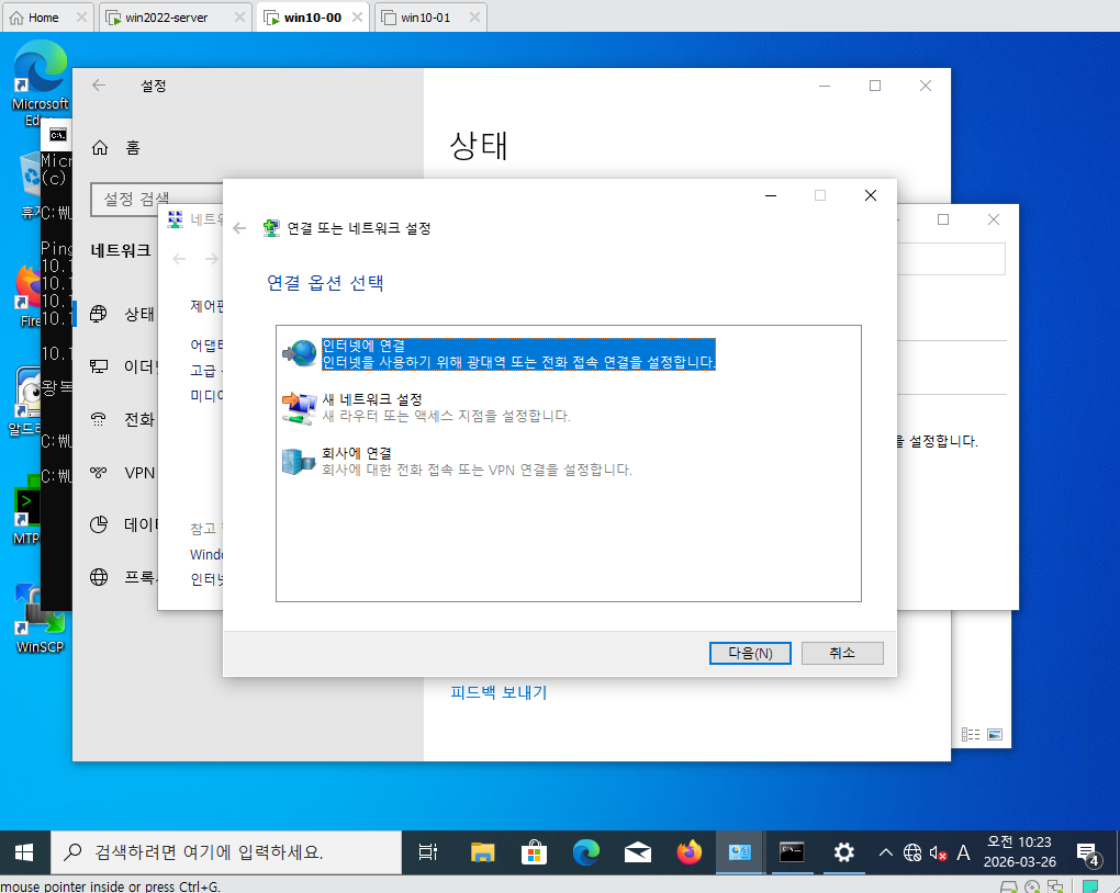 - 내 인터넷에 연결 사용 (인터넷 연결 상태를 확인해야 한다.)