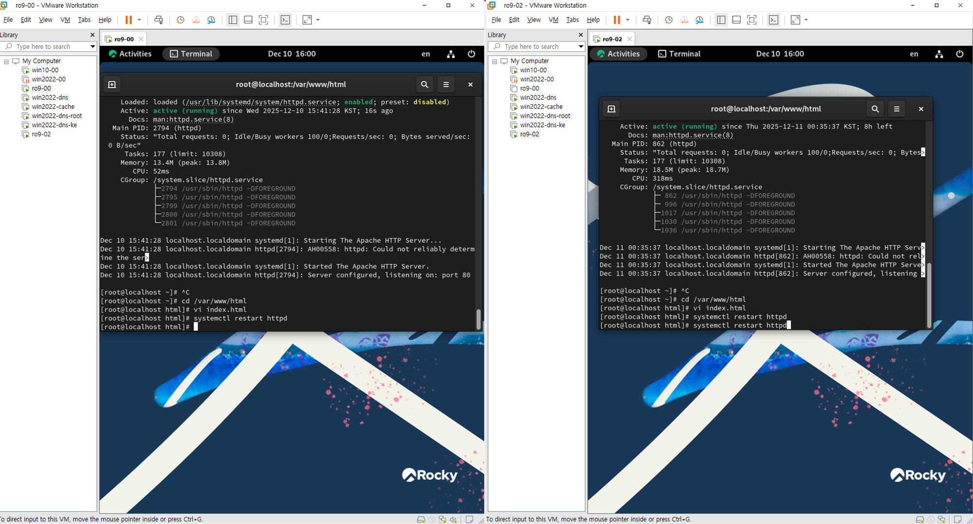 httpd 파일 수정한 후에 restart한다.