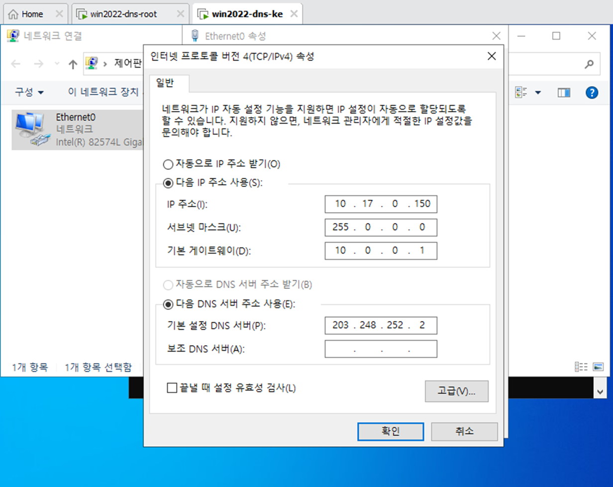 Win2022 DNS 서버(10.17.0.100)
