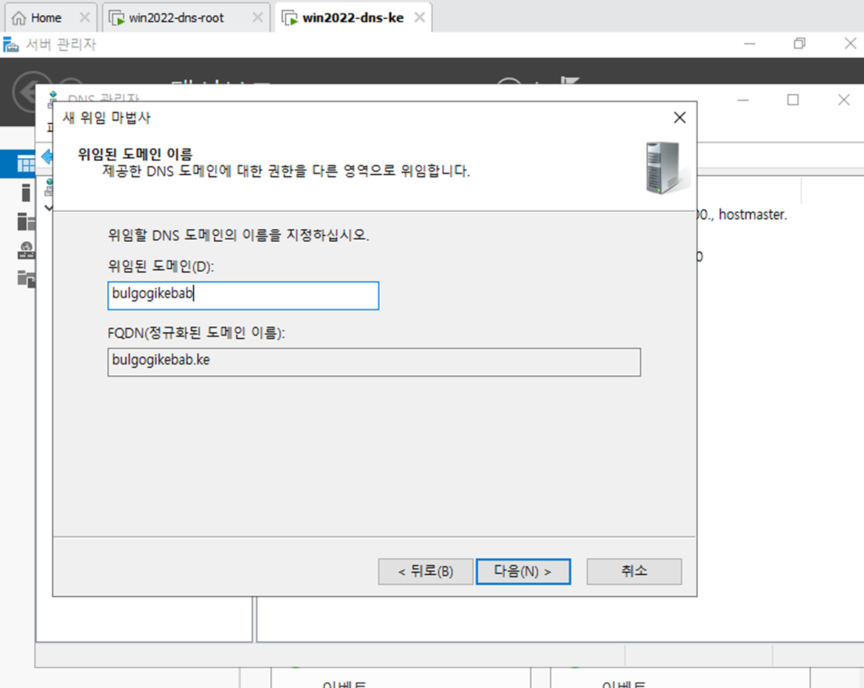 - VMWare에서 Delegated DNS(dns-ke)를 하나 만든다.