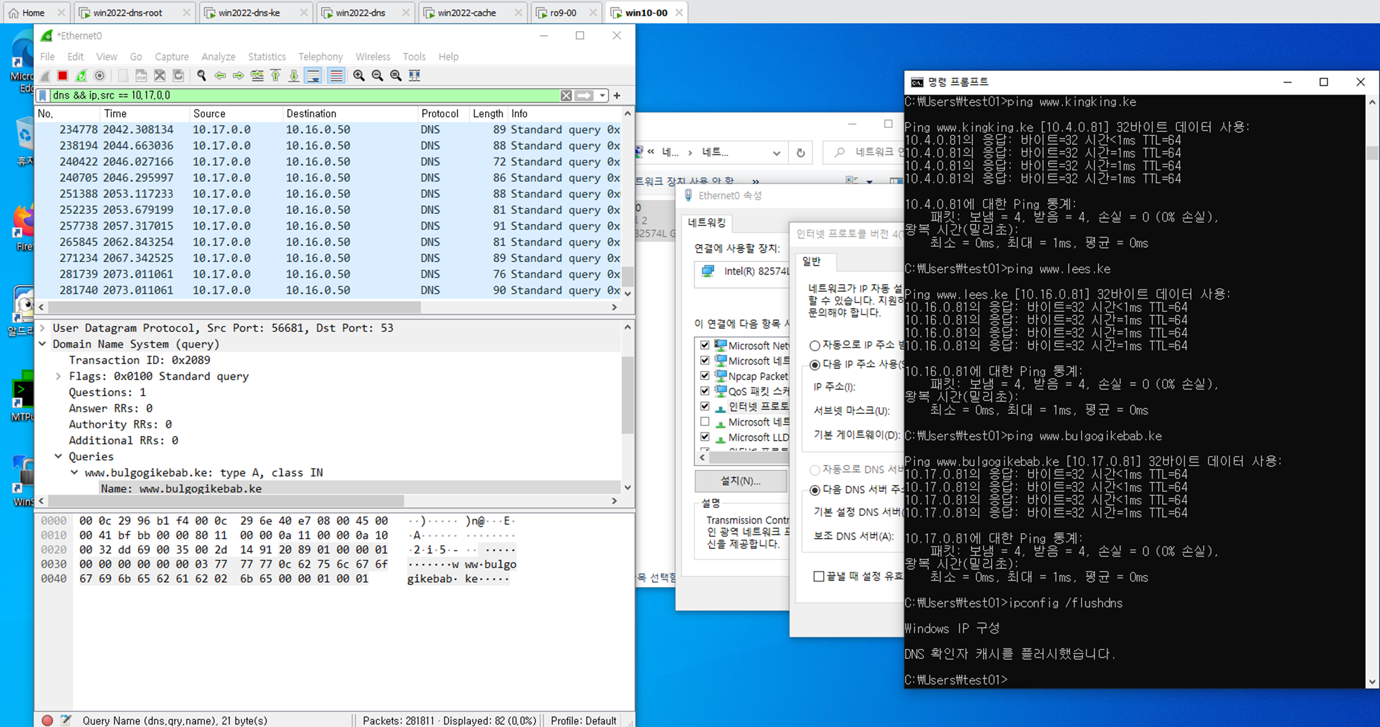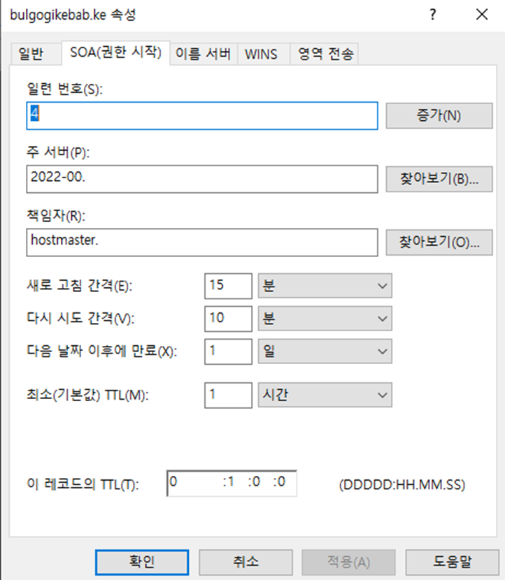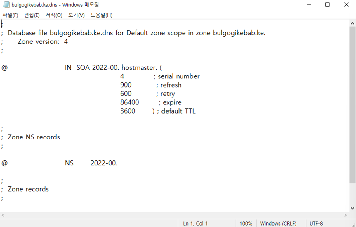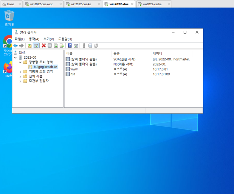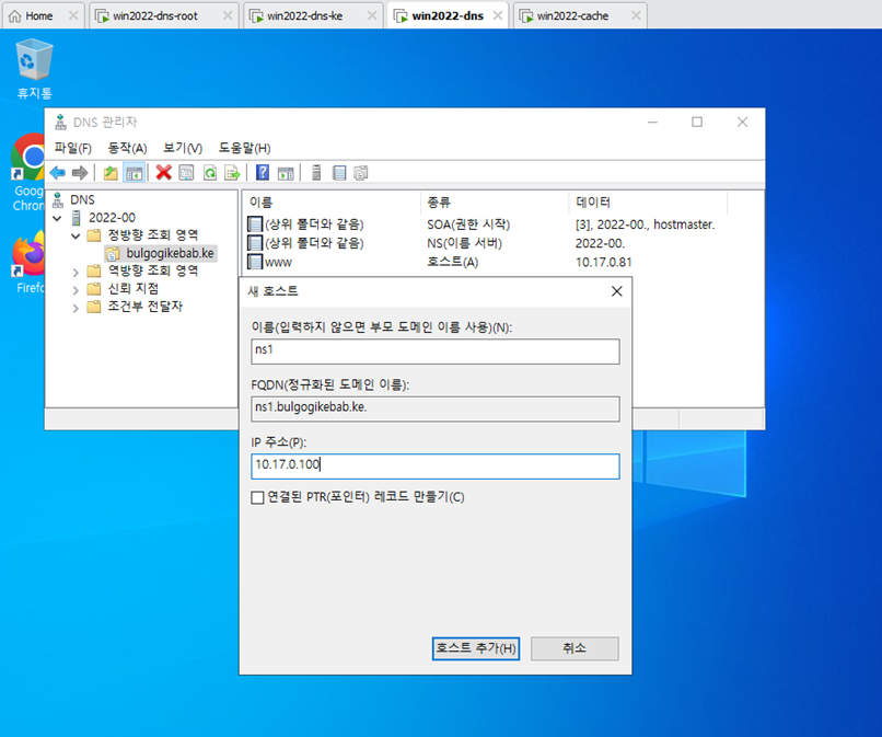 - Wind2022 DNS 서버에서도 ns1.bulgogikebab.ke로 새 호스트를 등록한다.