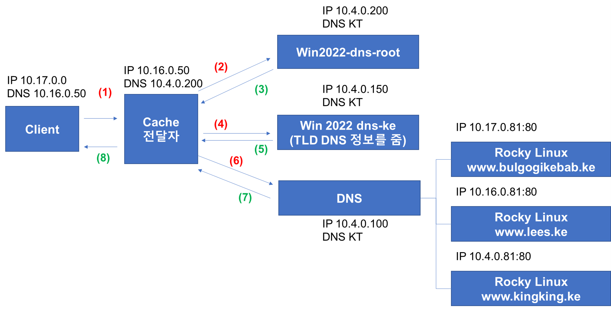 - 먼저 테스트를 위해서 이전에 만들었던 Client-Cache-DNS 구조에서부터 시작한다.