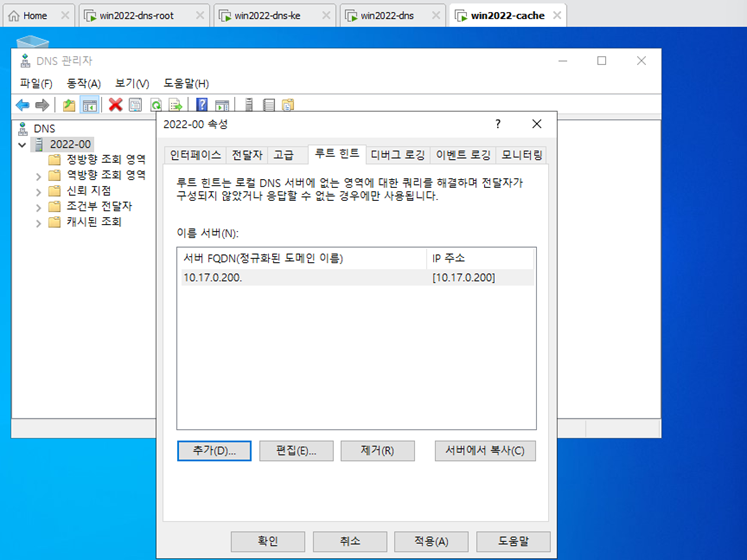 - Win2022 Cache 서버에서도 루트 힌트를 지운다.