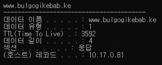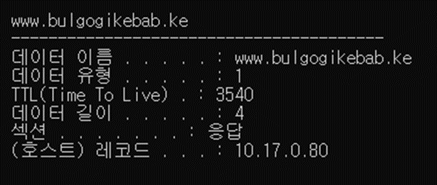 - displaydns 실행하면 방문한 사이트의 DNS가 아래처럼 나온다.