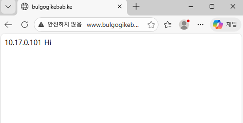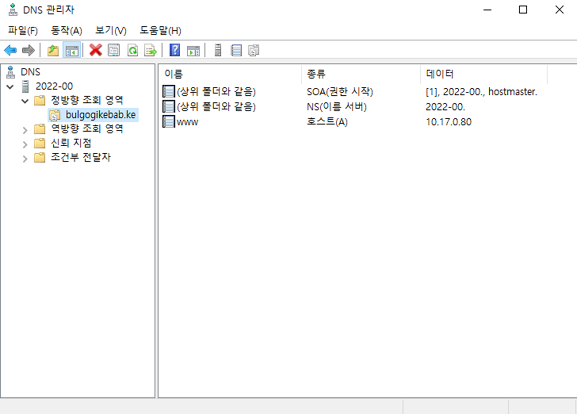 - DNS를 설정했으면, www.bulgogikebab.com을 입력하면, 10.70.0.80:80으로 자동으로 들어가질 것이다.