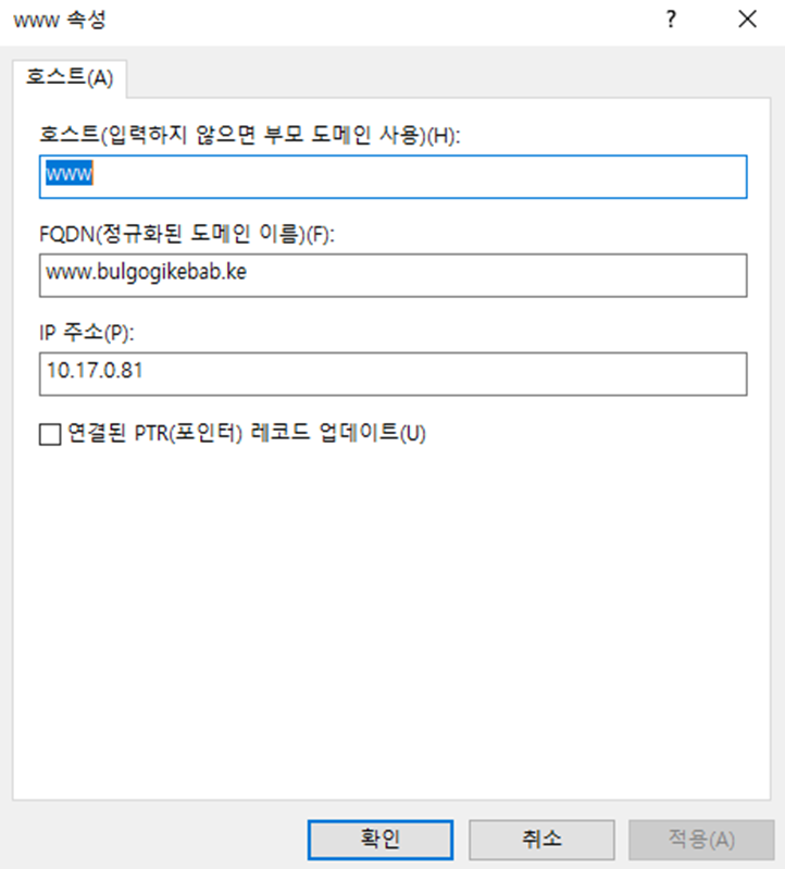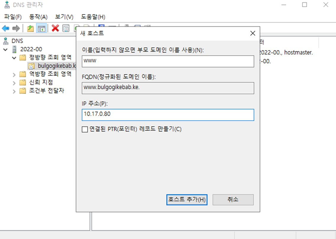 - bulgogikebab.ke에서 우클릭해서 새 호스트 설정