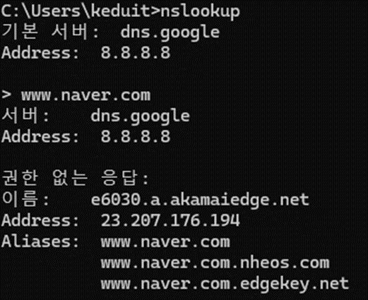 - nslookup은 www.naver.com 같은 DNS Address 주소와 dns를 확인한다.