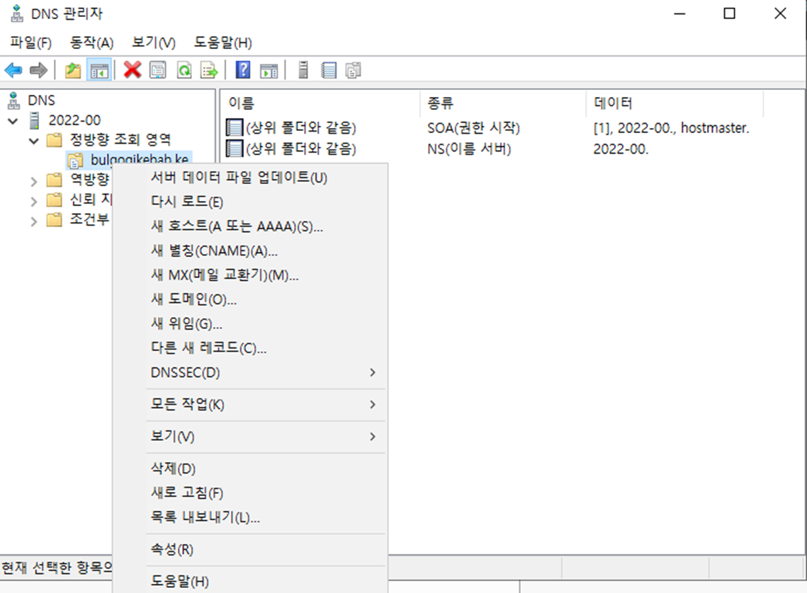 - Win2022 DNS 서버는 리눅스 서버의 IP를 받아서 DNS를 관리해주는 역할이다.