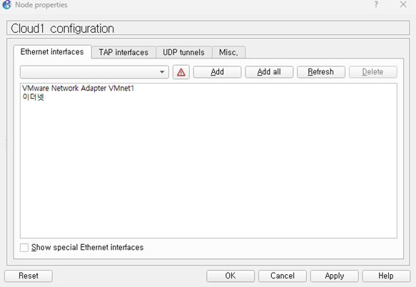 VMWare1(Win 10 Client)와 연결되어 있는 클라우드1을 설정할 때는 VMWare Adapter 활성화를 해놓아야 한다.