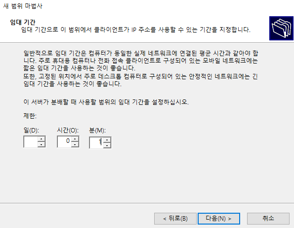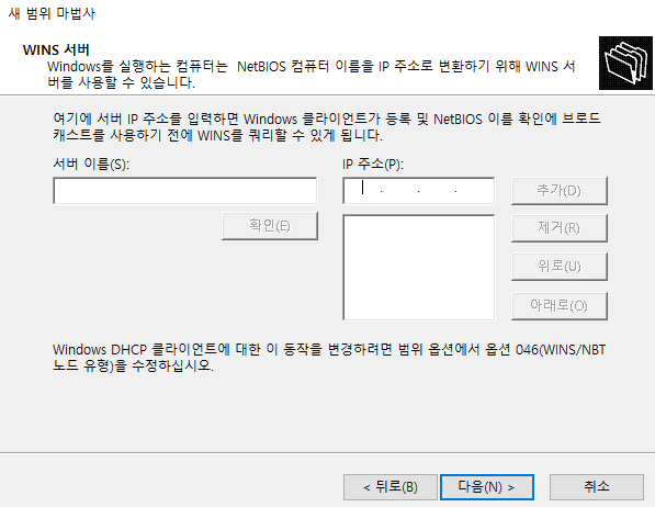 여기서부터는 DHCP 서버에서 사용할 포트 범위를 지정하는 단계인다.