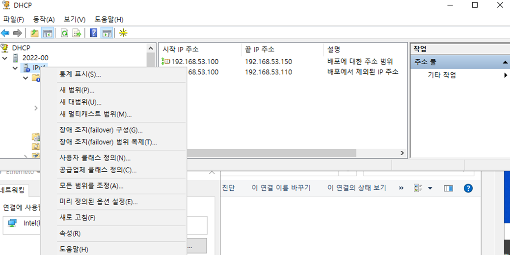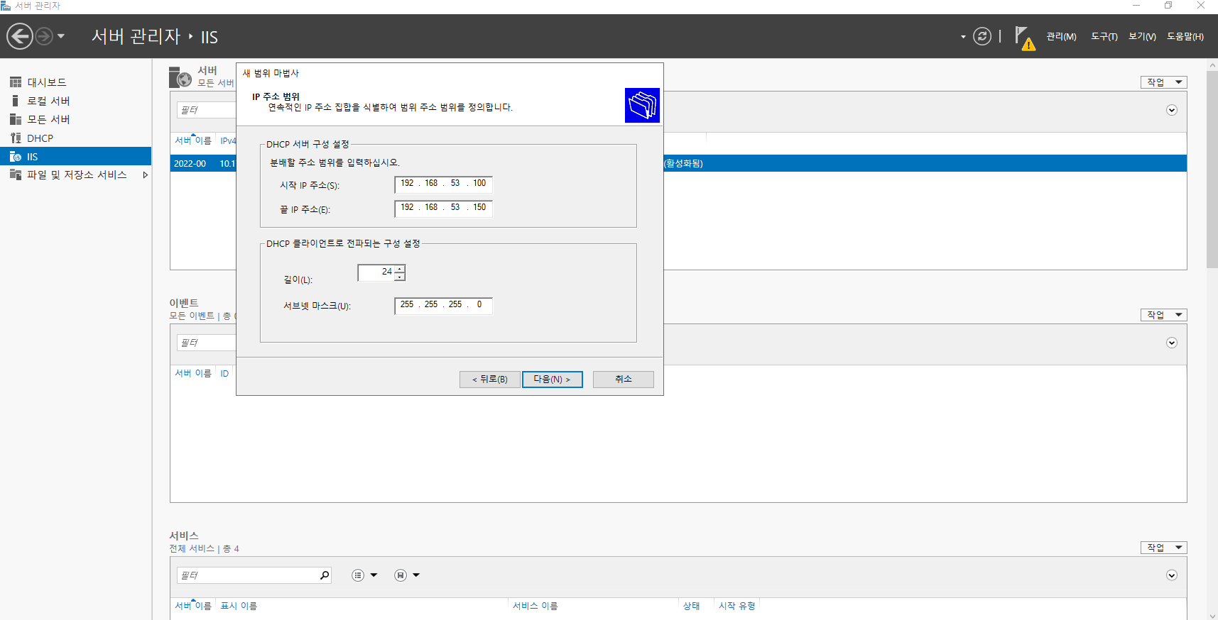 (2-4) DHCP중 IP 제외 범위를 결정한다.