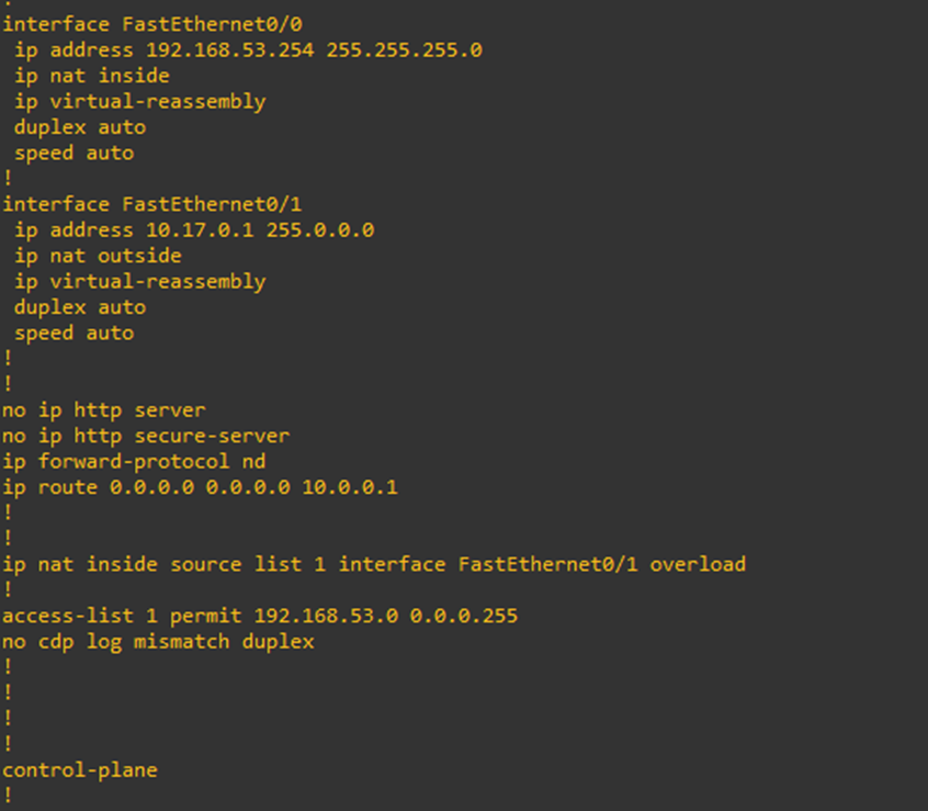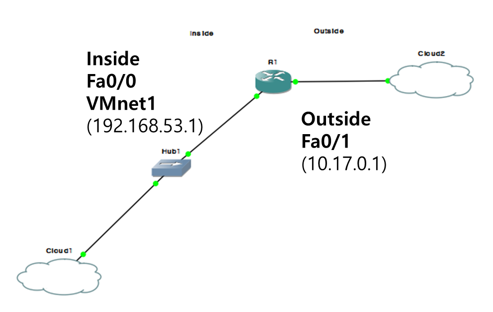 f0/1은 외부와 연결되어 있다. (여기서, 10.17.0.1은 대역만 정확히 맞추면 외부와 연결된다.)