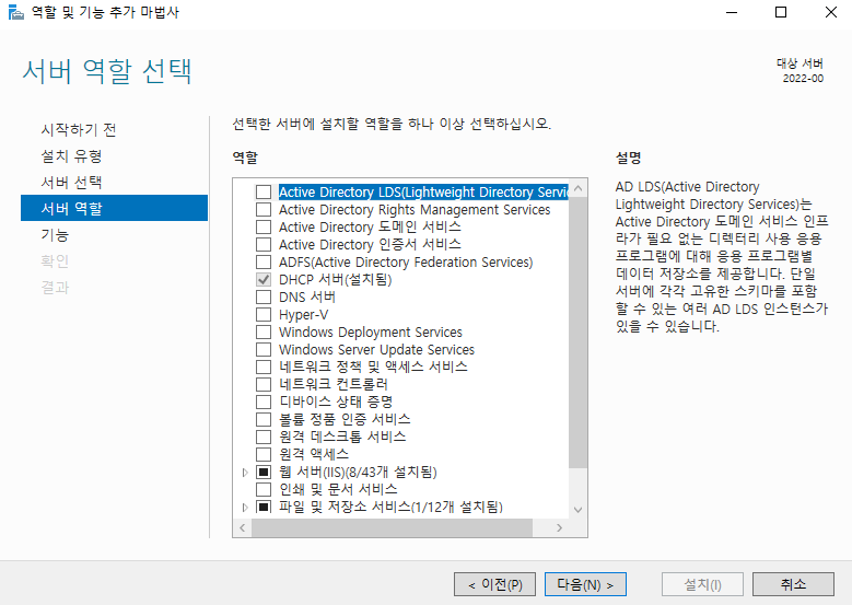 (2-2) WIN2022 서버 관리자 > 서버 역할 > DHCP 서버 기능을 체크
