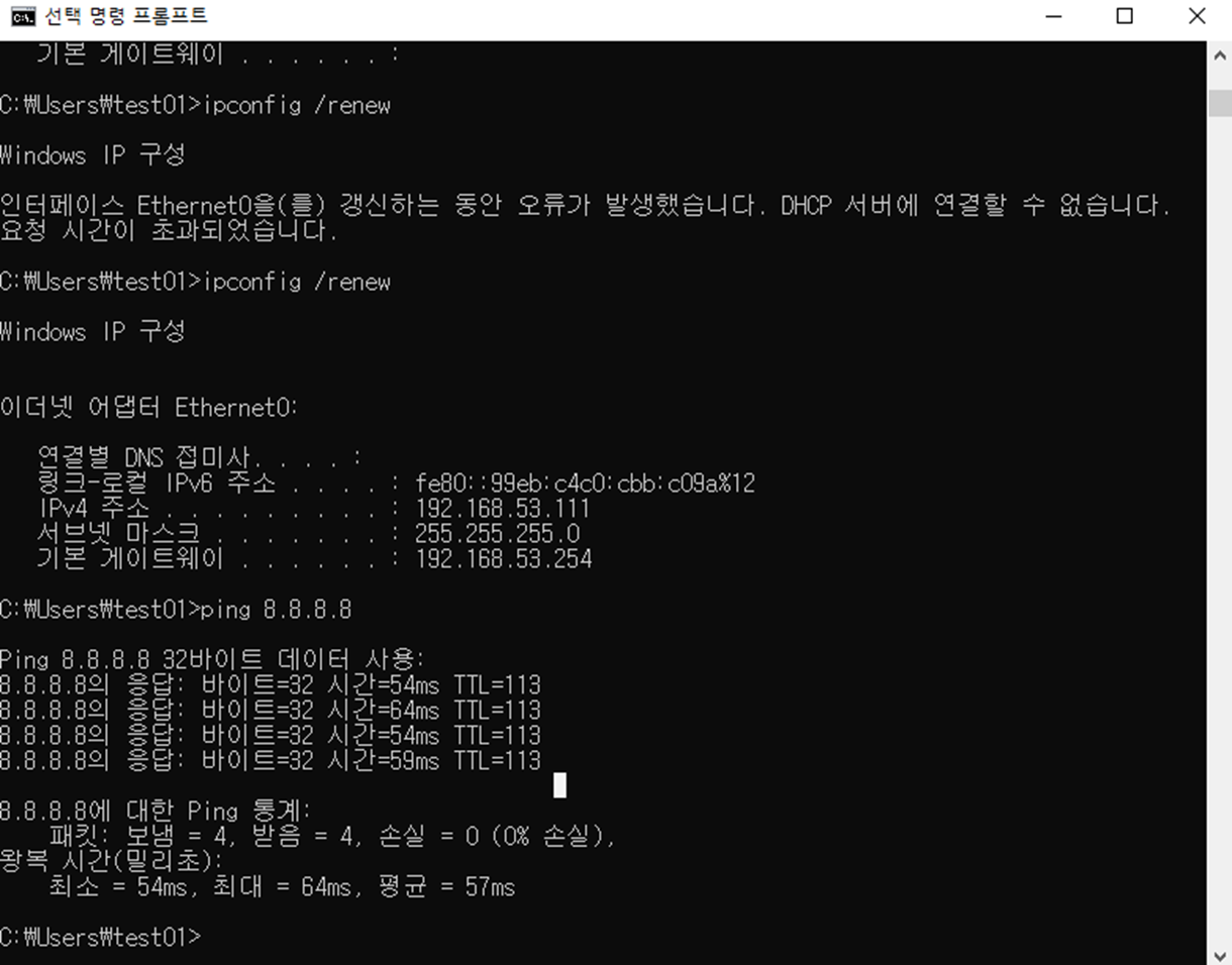 DHCP는 자동으로 IP를 할당하기 때문에 할당받은 IP를 제거해야 할 때가 있다. Release를 통해서 IP를 제거할 수 있다.