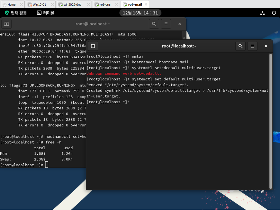systemctl set-default 한 다음에 reboot