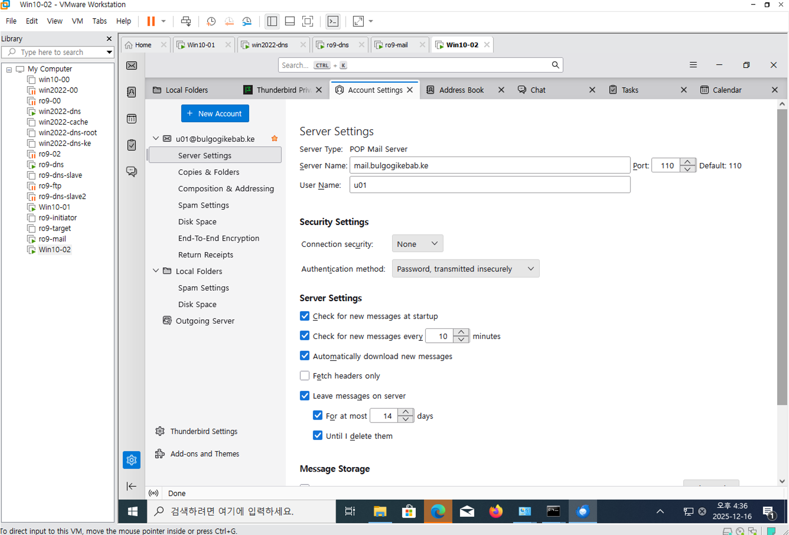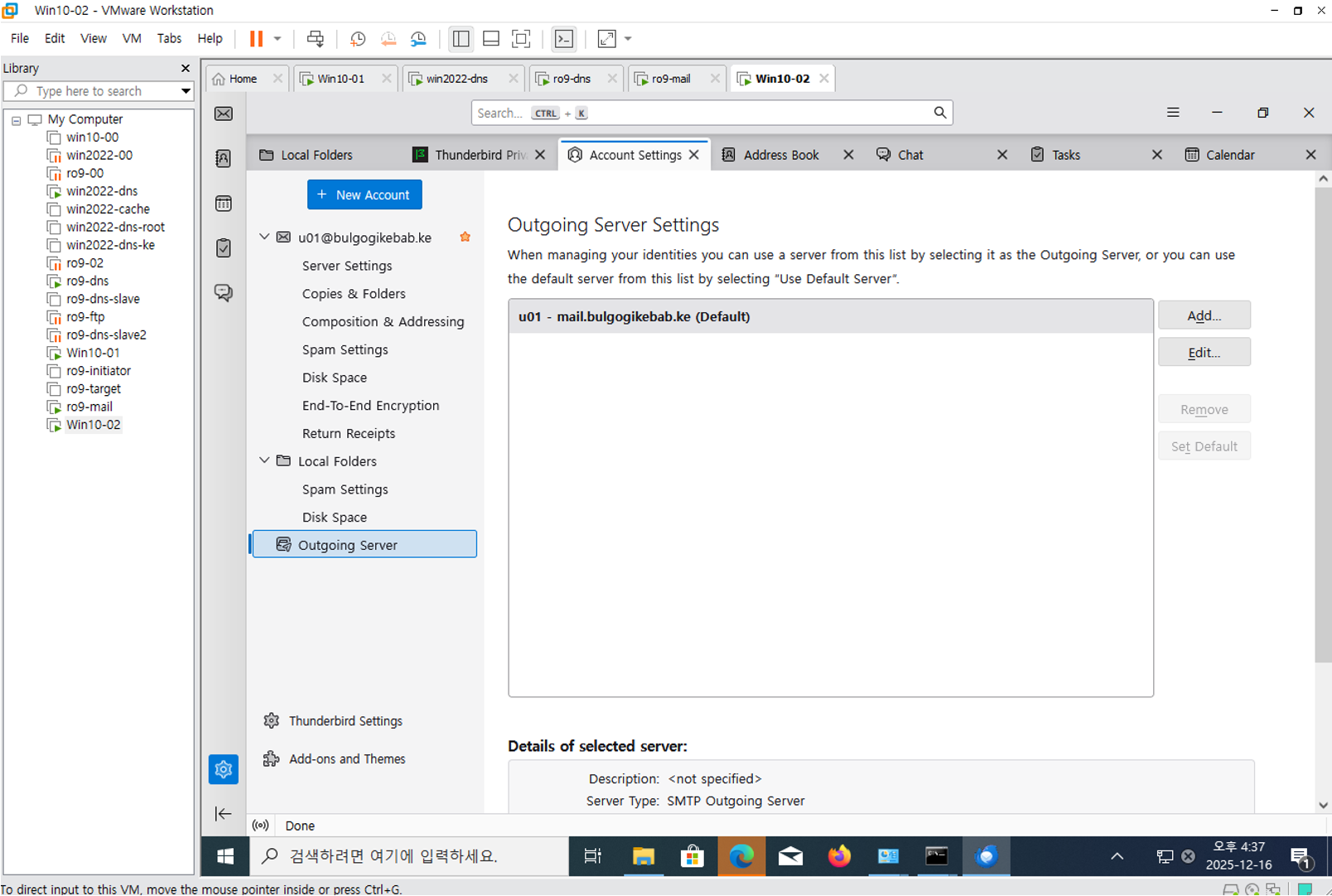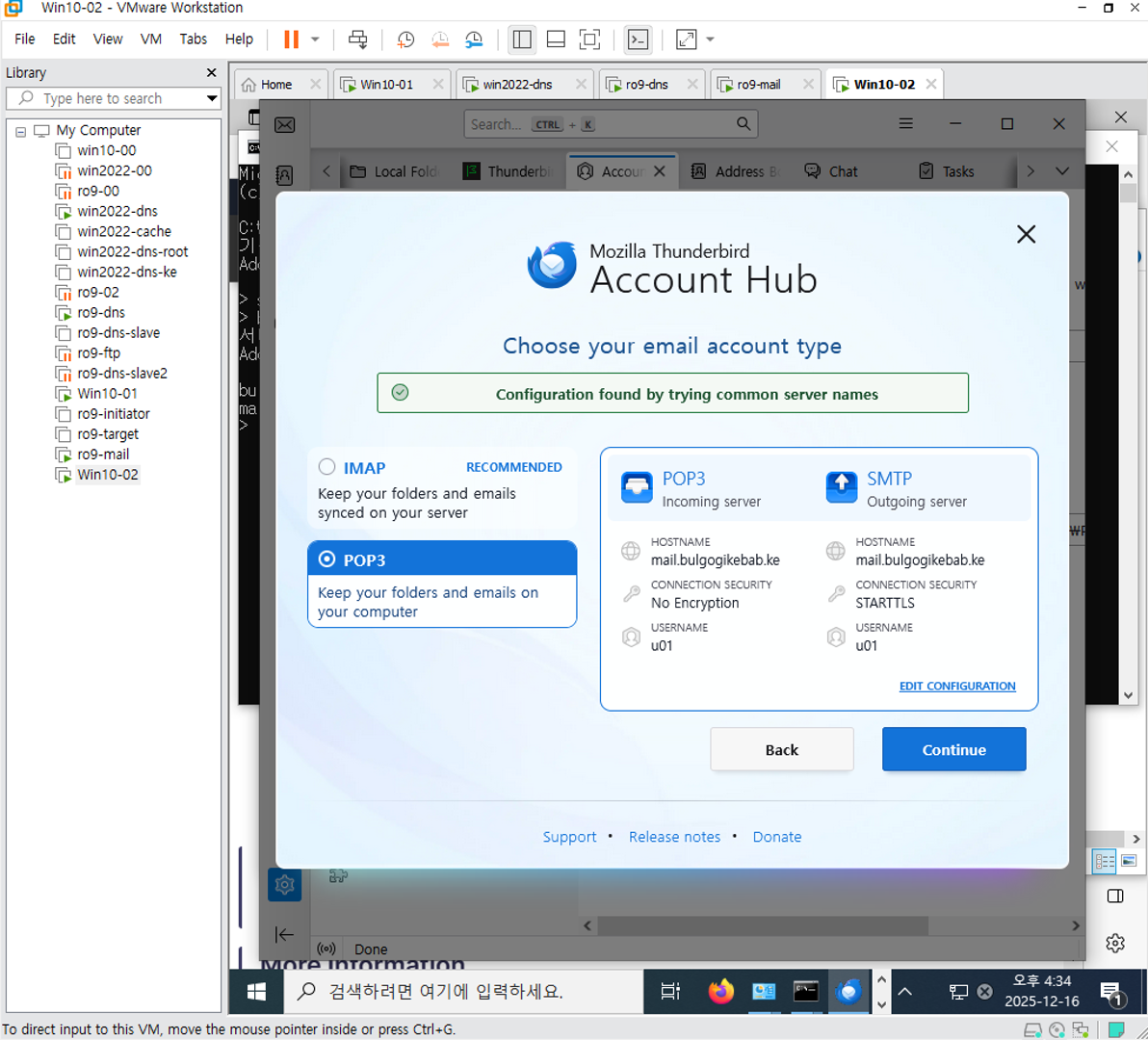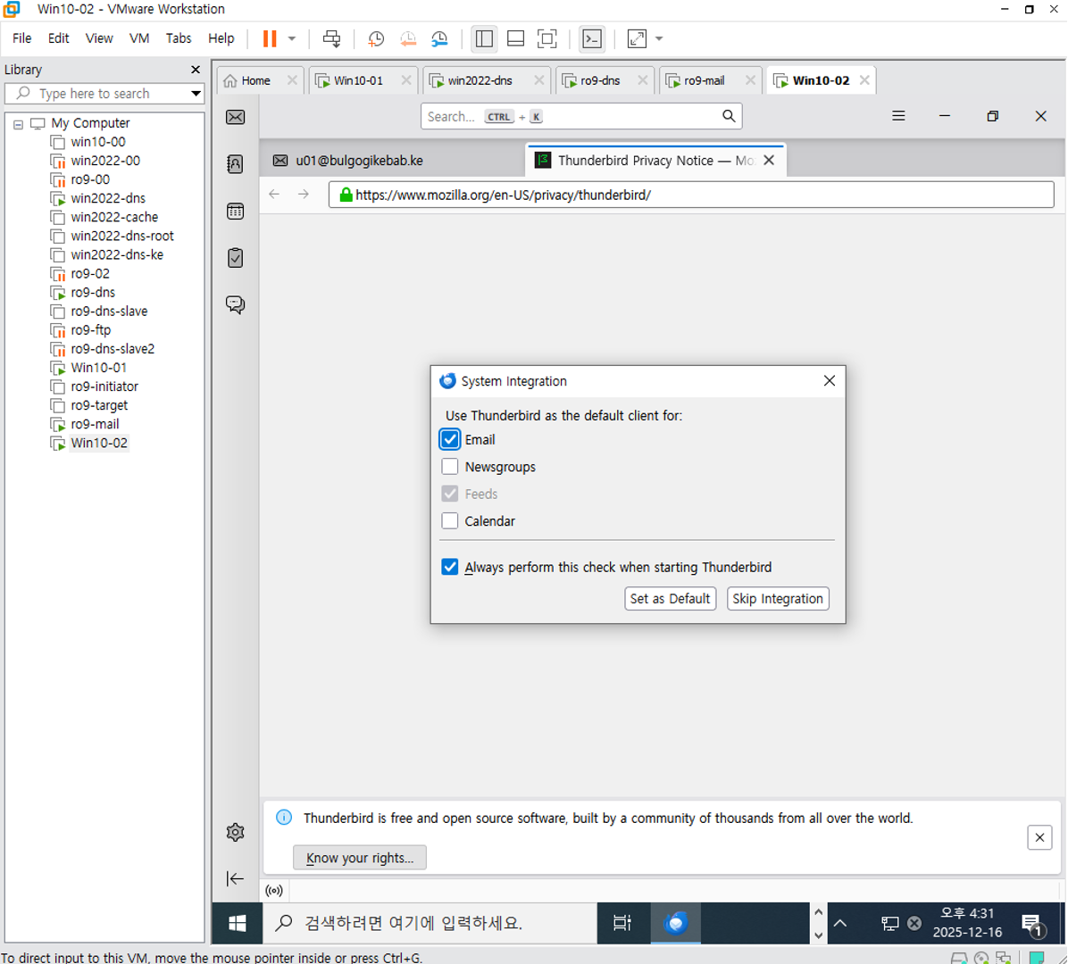 그럼 Vmware mails 쪽에서 네트워크 연결 한번 확인해준다.